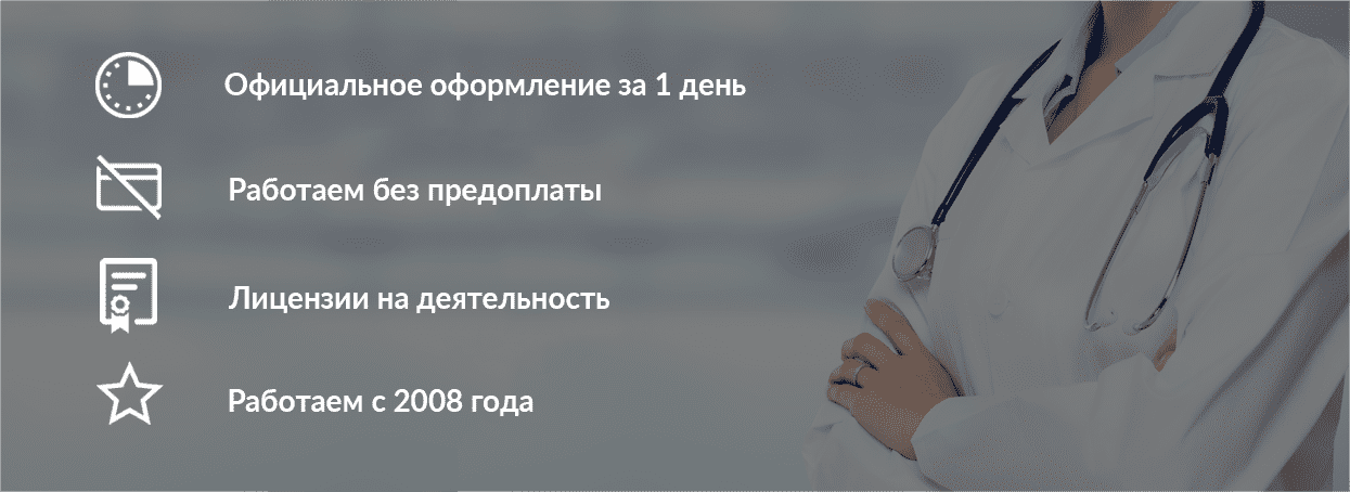 Пропустили пару рабочих дней по неуважительным причинам? На нашем сайте можно недорого приобрести медсправку о временной нетрудоспособности, которая закроет непродолжительные прогулы. Мы решим все вопросы, связанные с получением медицинских справок и избавим вас от бесконечного хождения по кабинетам врачей.